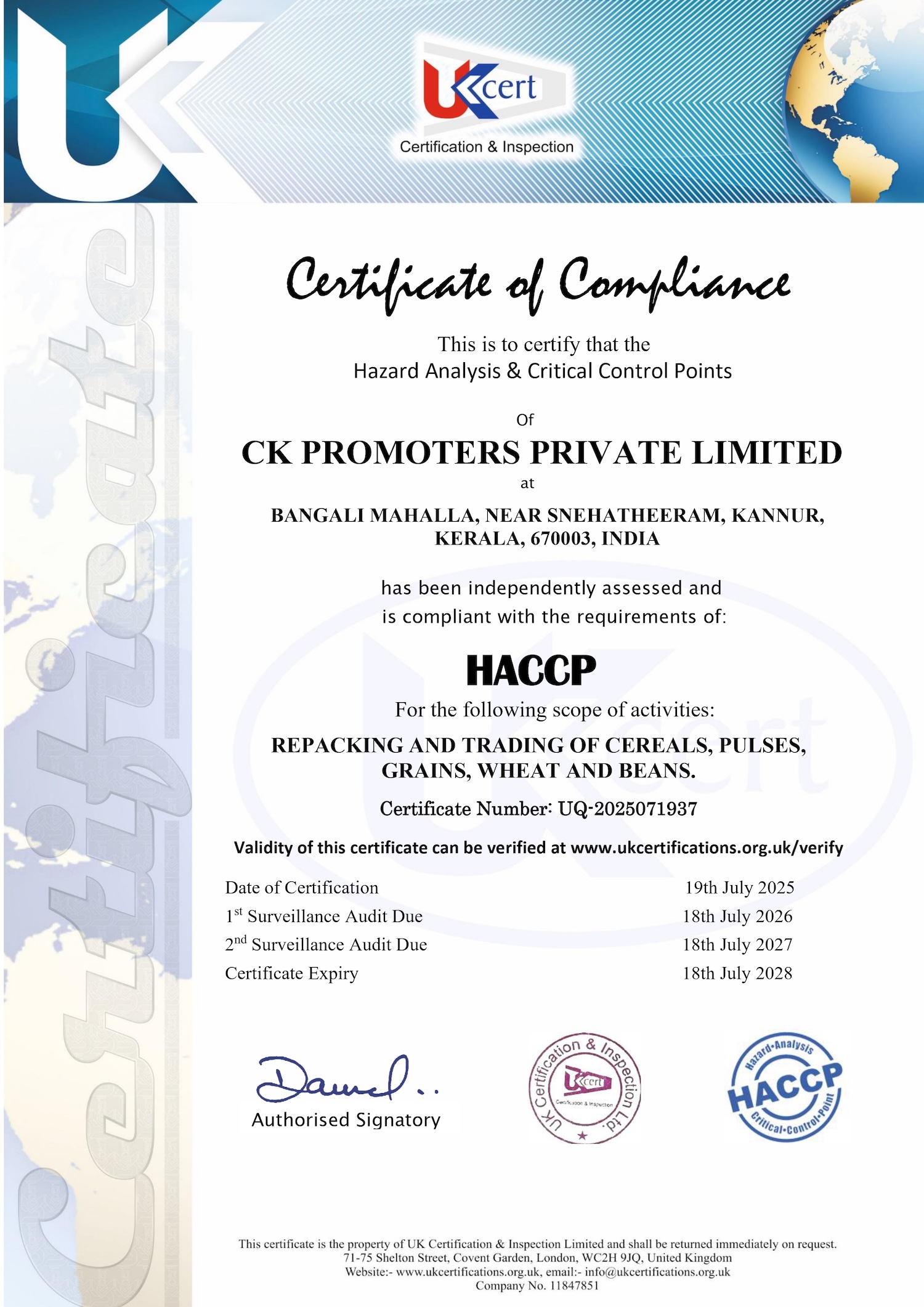 CK Promoters Private Limited based in Kannur, Kerala, India, offer its services across the state covering multiple sectors like Govt Supply Chain, Construction & Real Estate, Tourism & Hospitality, Export & Import and Management Consultancy & Business Process Outsourcing. We are committed to trust and reliability by providing quality driven innovative services to the satisfaction of our customers.